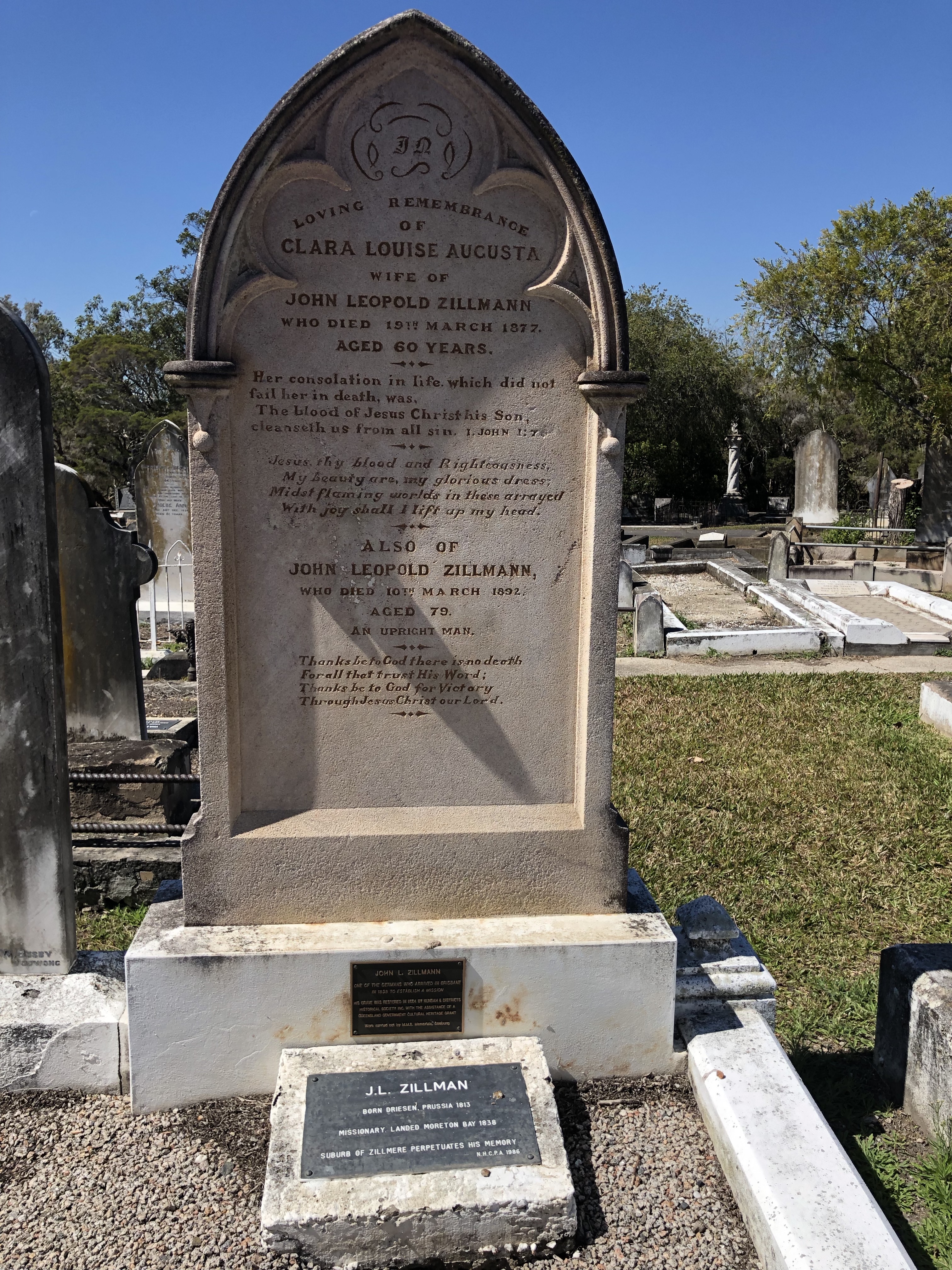 TB4CnlBDReCqIqh4mvTelg Grave of Clara Louise and Johann Leopold Zillman, Nundah Cemetery