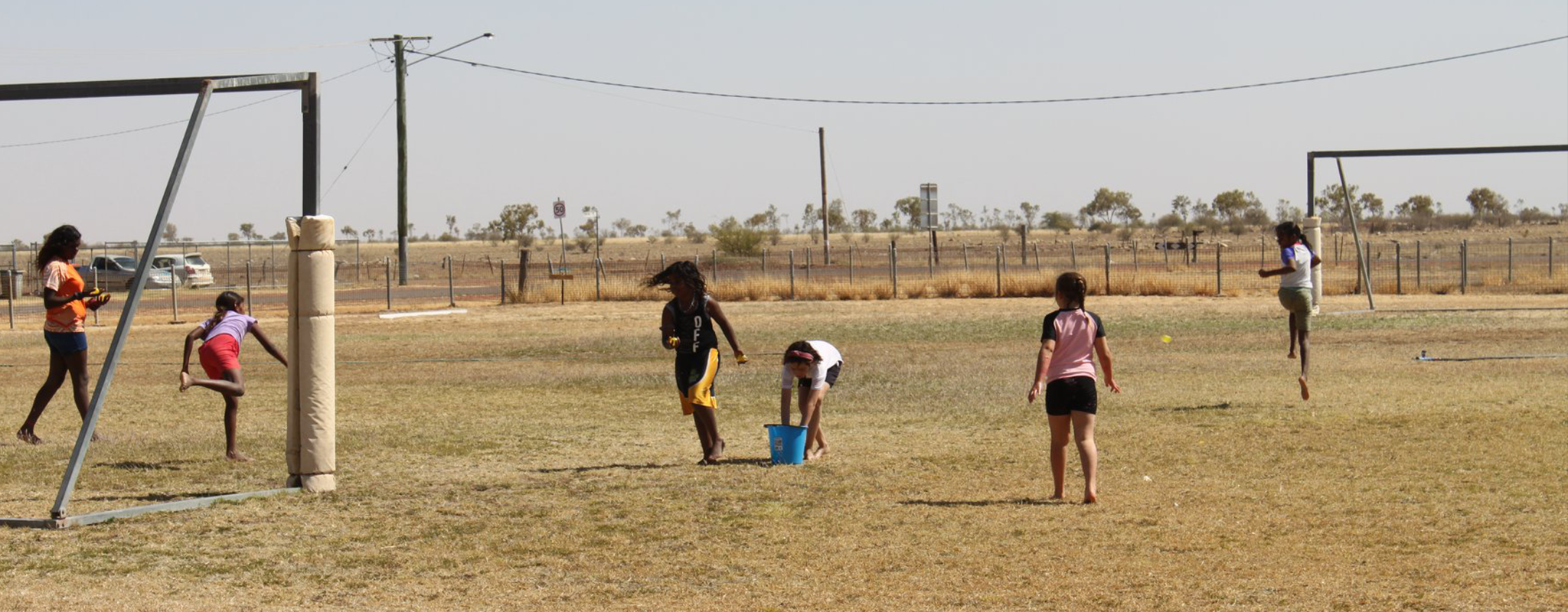 Children playing in the Camooweal State School sports field camoowealss.eq.edu.auIt was cold. These were coastal kids, not used to desert country in mid-winter. Next morning after their porridge breakfast they huddled together like brolgas in the cold as they lined up for the march past.