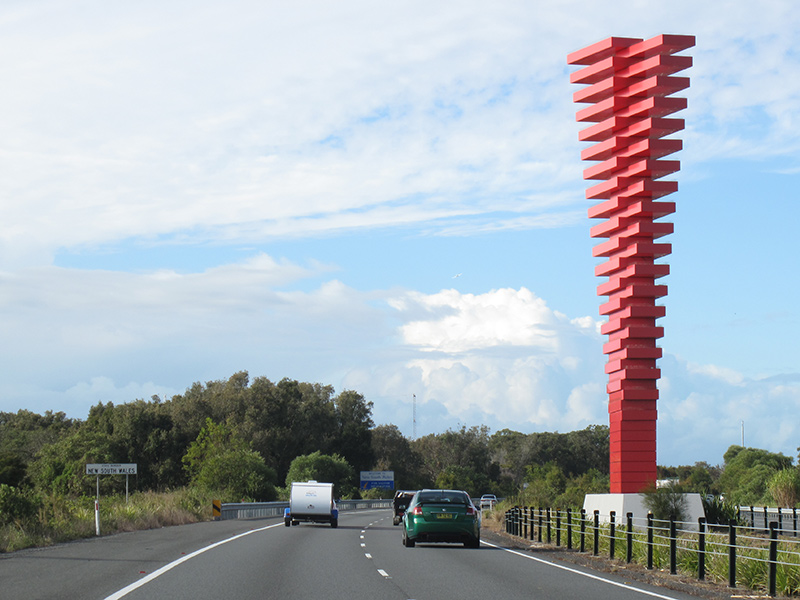 In normal times in the twenty-first century, cars drive straight across the borders without a pause; but still, when I cross into New South Wales on the Pacific Motorway, speeding past the big red border sculpture along the Tugun Bypass, or down through the rugged border mountains near Mount Lindesay, or at Wallangarra on the New England Highway, or Goondiwindi on the Newell, it feels like an event, with a little sense of visiting a foreign country; and crossing back into Queensland feels like coming home.