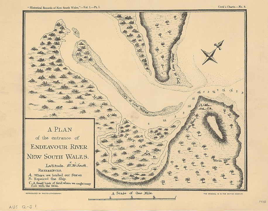 A plan of the entrance of Endeavour River, New South Wales: lati “A plan of the entrance of the Endeavour River, New South Wales, 1770” Cook’s Charts, National Library of Australia collection