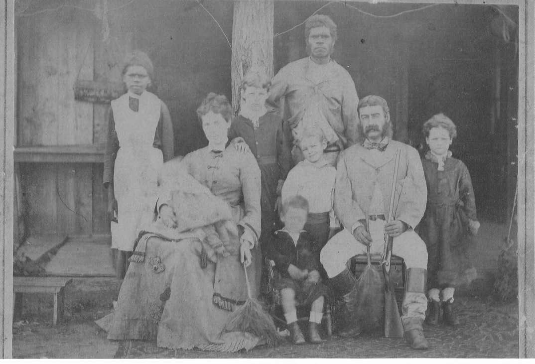 Standing behind the family are an Aboriginal man and young girl, the girl dressed as a domestic servant and the man in outdoor clothing. I hope that including the servants in the photo is an indication that, in spite of the all-pervasive racism among white people in this time and place, there is affection here, or at least respect. David Turbayne was interested enough in local Indigenous matters to make a collection of words in the local Bigambul language, which has now largely disappeared. That list is now housed in Canberra, as part of the collection of the Australian Institute of Aboriginal and Torres Strait Islander Studies (AIATSIS).