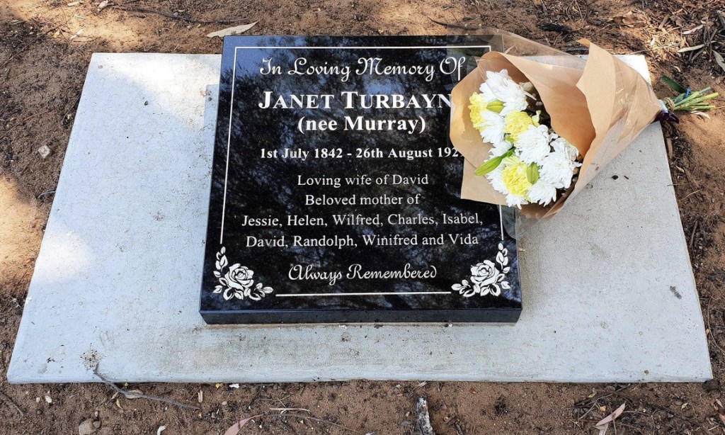 In 2019, ninety years after Janet’s death, Nadine arranged for a headstone to be installed on our great-great-grandmother’s grave. We went out to Roma, a small group of her descendants, to that barren, drought-stricken cemetery, to honour her there with a quiet family ceremony, and flowers.