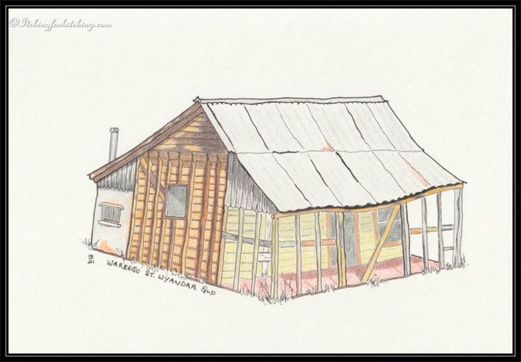 I’ve never been to Wyandra, but it seems that like many western towns it has a lot of old character houses and cottages with no one living in them – an indication of loss of population. I like these sketches of the old houses of Wyandra.