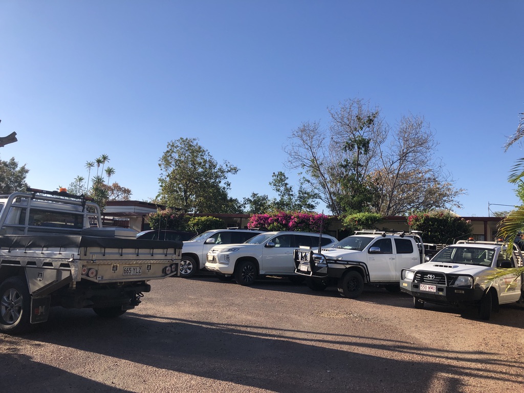 Work vehicles parked outside the units at the Royal Hotel Motel, Hughenden