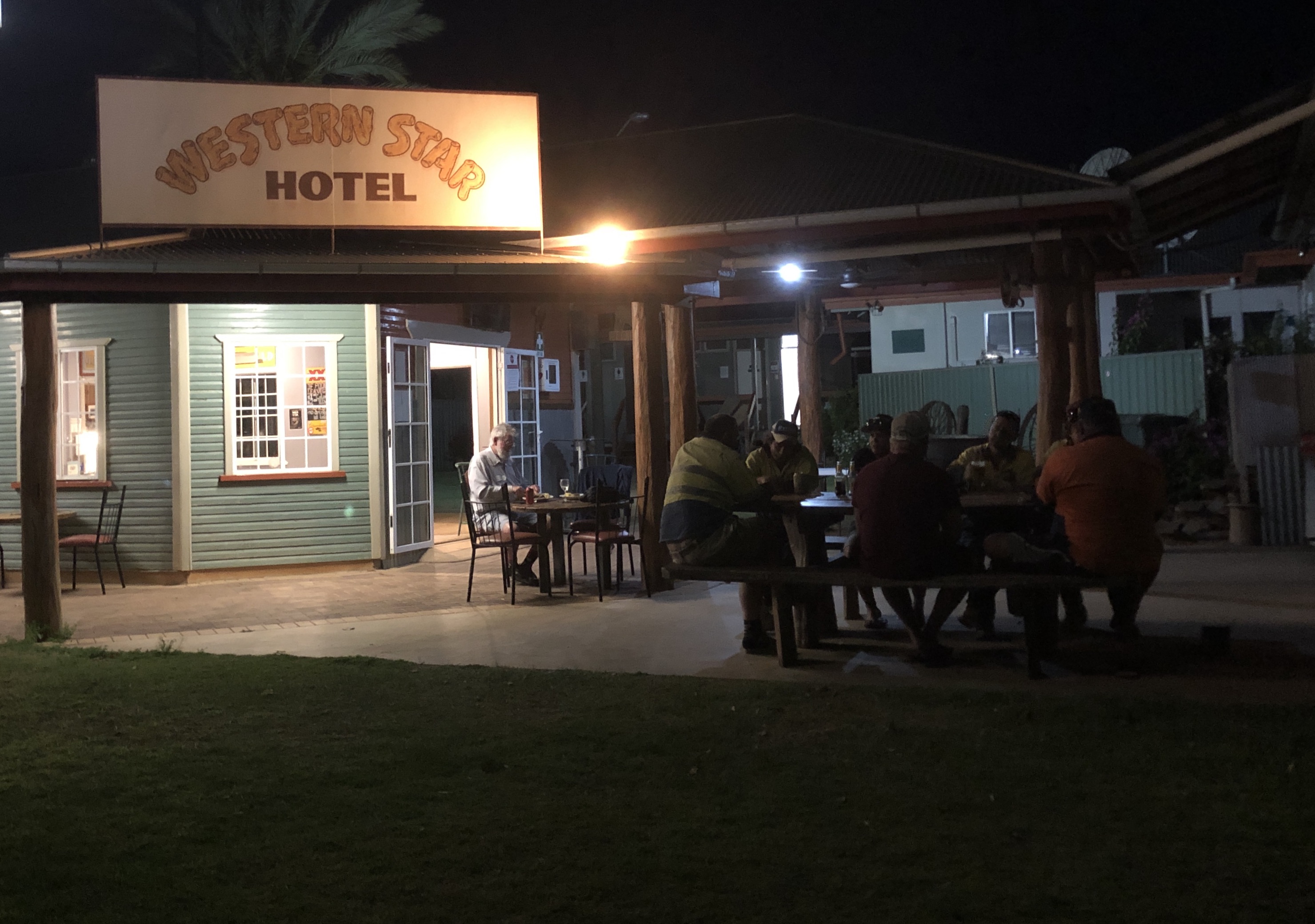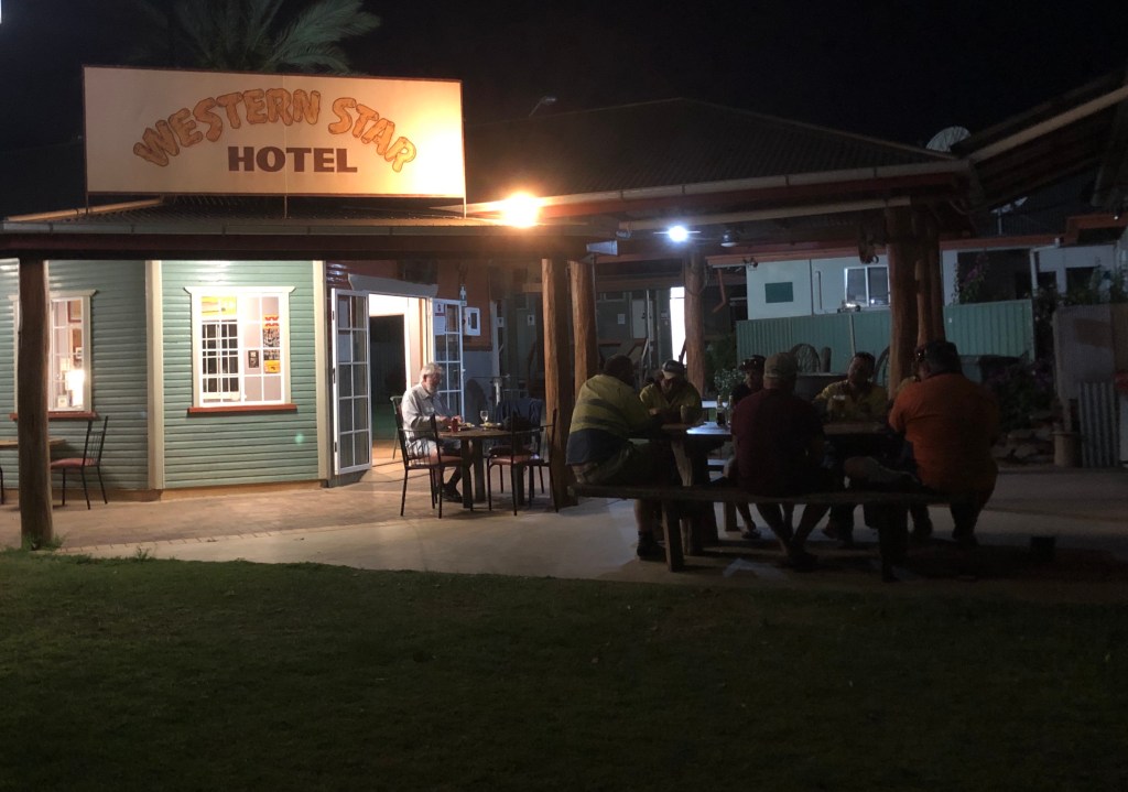 A week later, we were in the small Channel Country town of Windorah, 1200 kilometres west of Brisbane. The Western Star Hotel Motel is famous in the area, and we had our dinner there, out under the verandah roof.