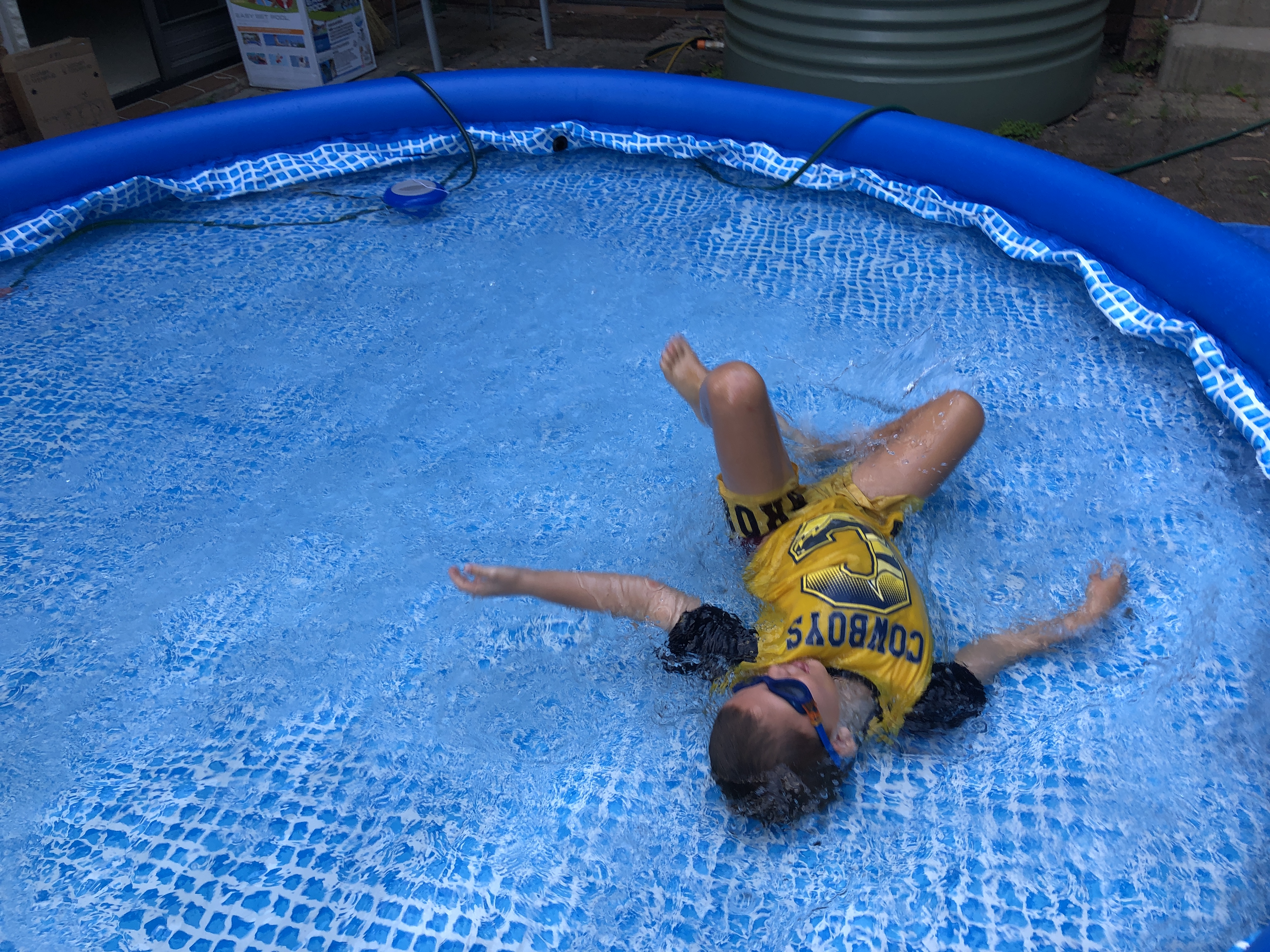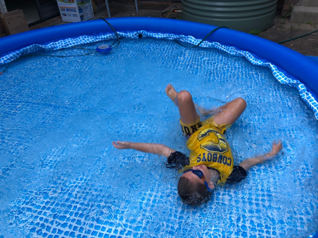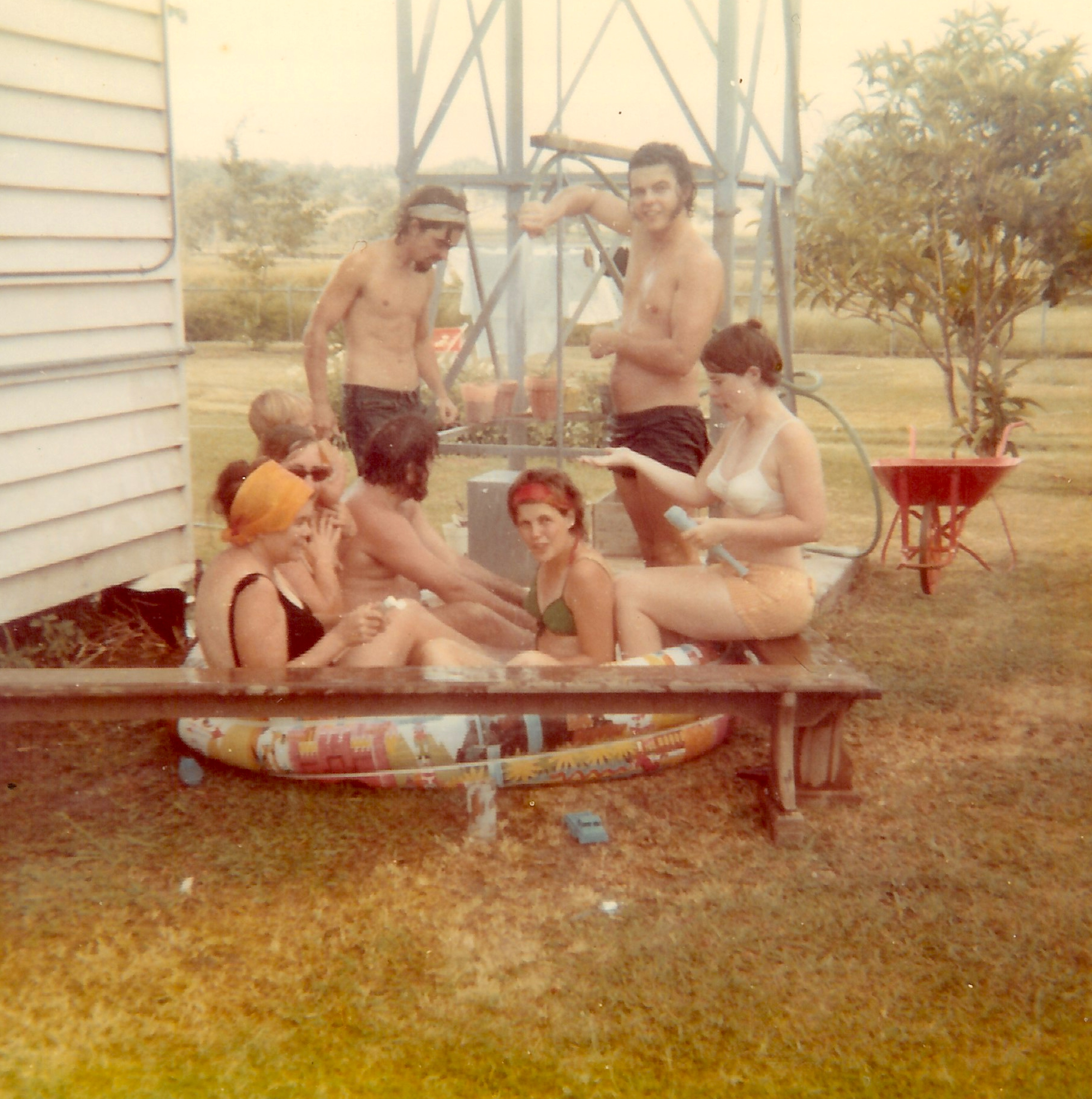 On Christmas Day, desperate from the heat, we pumped up the kids’ little inflatable pool next to the tank stand and all got in it, under the hose: three generations squeezed in together.