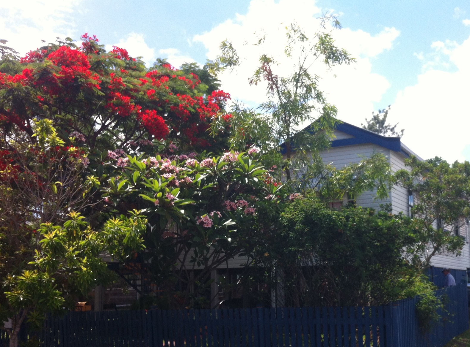 There are trees flowering all year round, but they are most spectacular in Spring: jacarandas, silky oaks, flame trees and poinsettia, and the natives: sterculia, huge spreading tallow woods and gums.