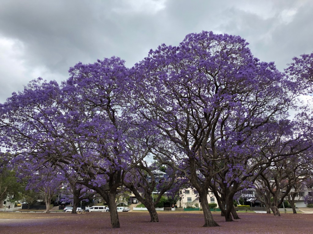 There are trees flowering all year round, but they are most spectacular in Spring: jacarandas, silky oaks, flame trees and poinsettia, and the natives: sterculia, huge spreading tallow woods and gums.