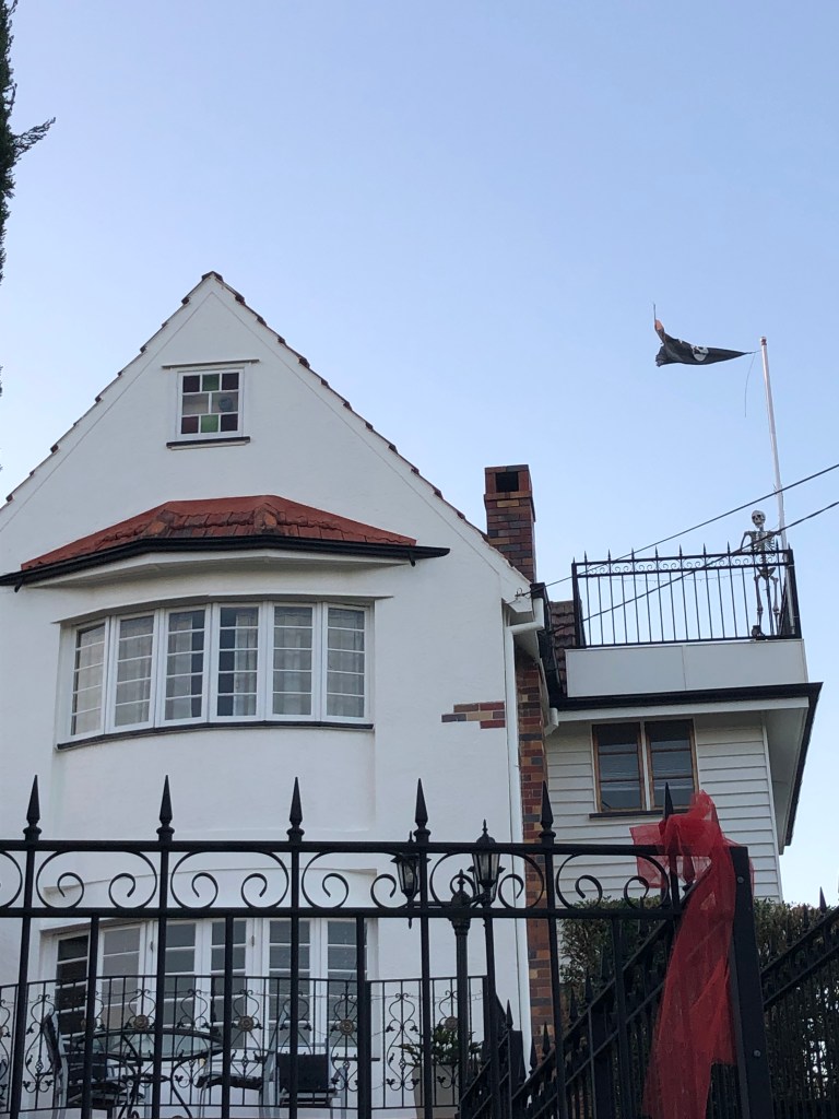 There’s a skeleton guarding a rooftop not far from Greenslopes Hospital.