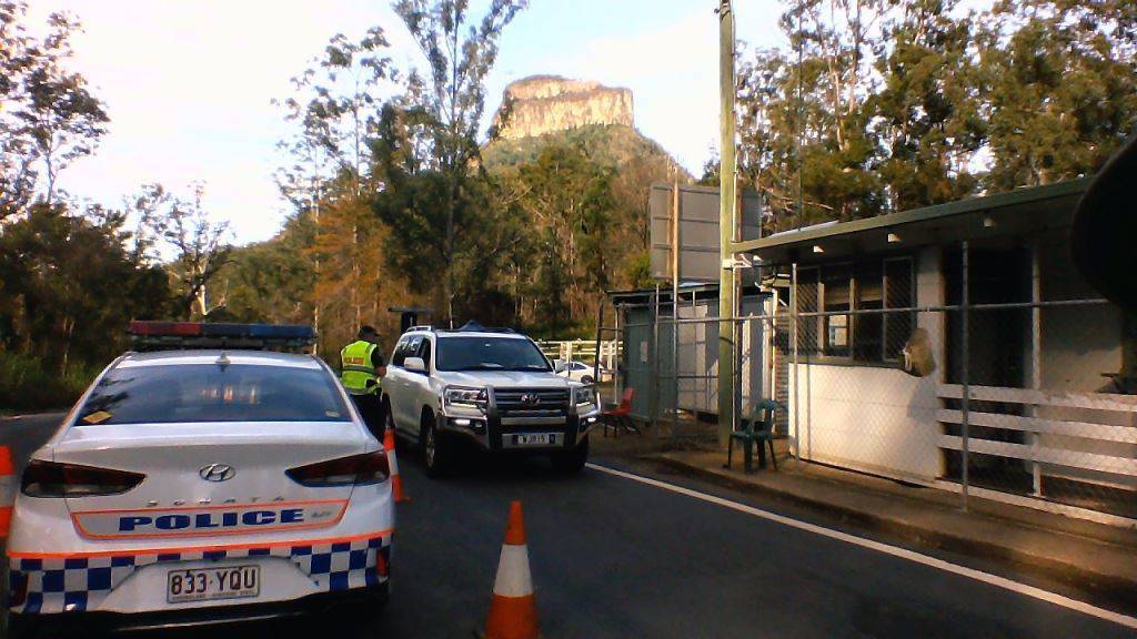 West of the Gold Coast and Border Ranges, the checkpoints are on the few main highways. Many smaller crossings right along the border are closed to through traffic already. Others, including streets in small towns, are blocked completely.