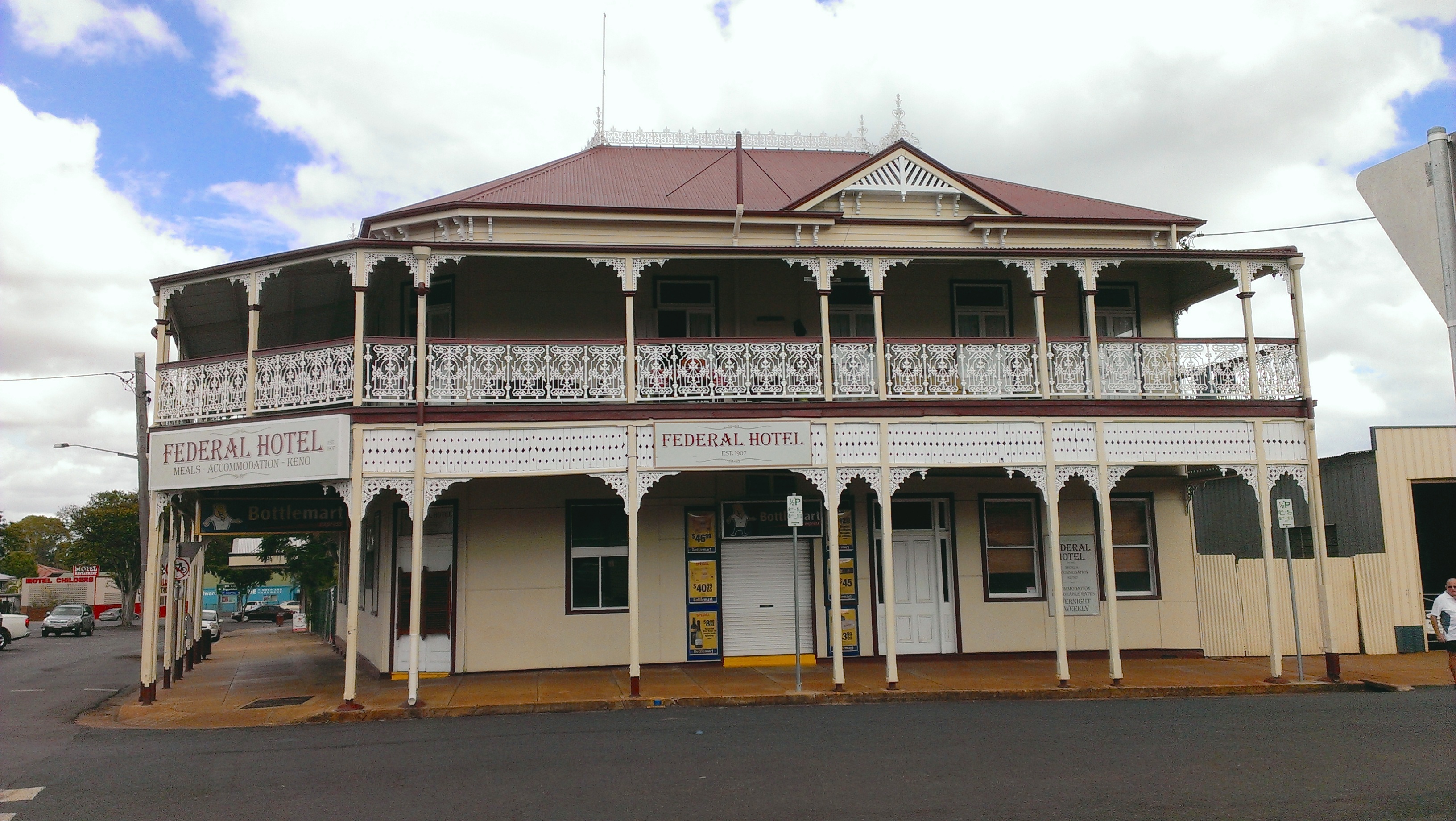 Afterwards, we walked up Oak Street for a pub crawl. It was Rugby League Grand Final night, with two Queensland teams competing, the Brisbane Broncos and North Queensland Cowboys. The epic game was played in Sydney, but Nadine and I watched it in five different Barcie hotels: Union, Railway, Artesian (“The Artie”), Shakespeare and Commercial. Some were cheering for the Broncos, but most were ardent Cowboys supporters – people in the regions supporting the regional team.